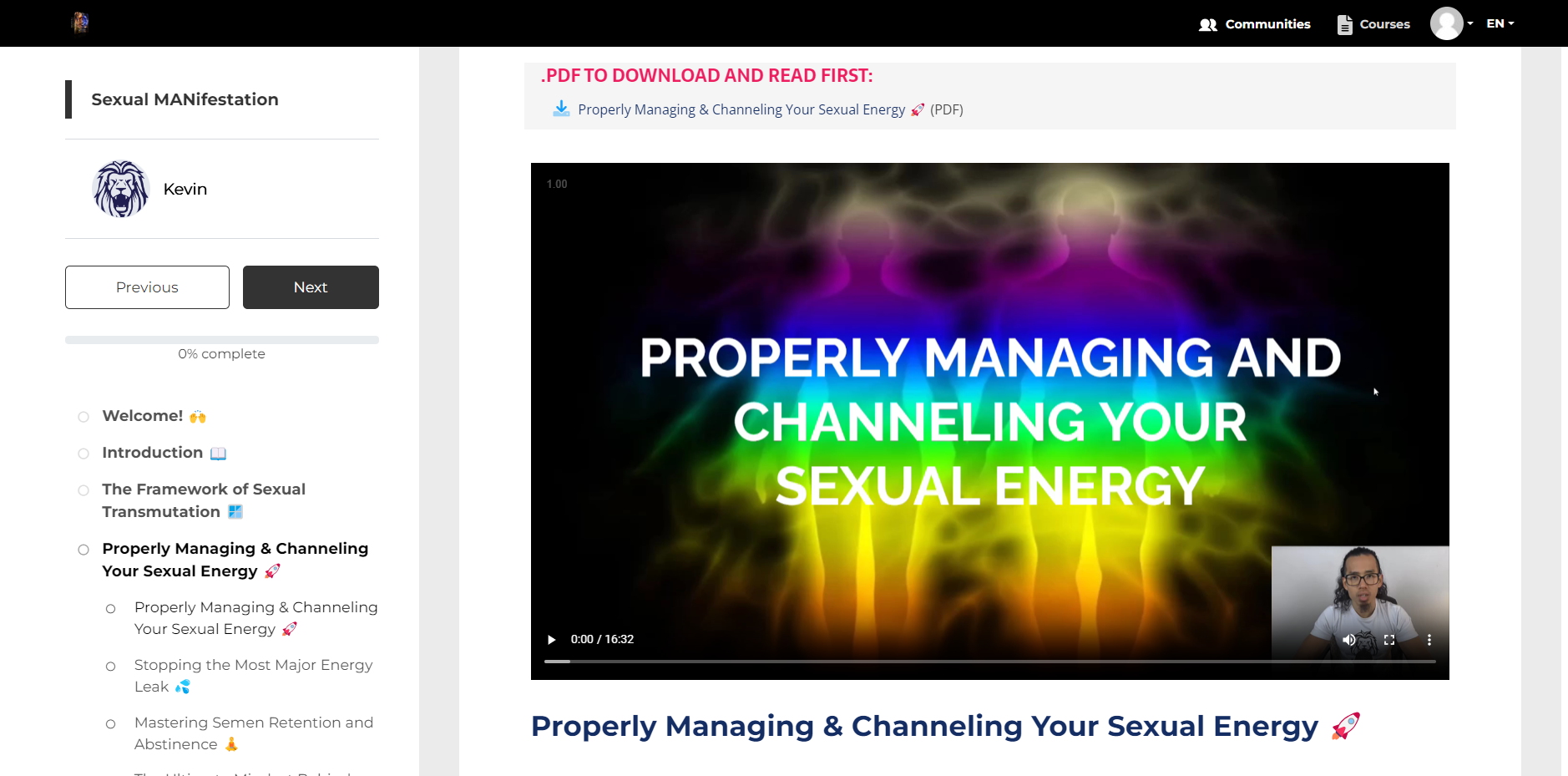 Manifestation and attraction are the new age spiritual buzzwords; however, manifestation and attraction is not as magical as it’s made out to be. In this course, you will learn the step-by-step, no B.S. way to truly manifest with your sexual energy.